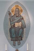 In dem 3,60 Meter hohen Spitzoval ist der thronende Christus dargestellt. Seine rechte Hand hält das Eideszeichen, während die linke ein Buch auf dem Schoß hält.