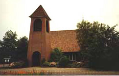Die Kirche unter ihrem Walmdach, das einen Reiter mit Kugel und Kreuz auf dem First trägt, dem geschützten Haupteingang und dem Glockenturm, bilden miteinander eine lebendig- harmonische Gruppe. Das Glöckchen im Dachreiter ist nach jahrelangen Diensten aufgrund der von ihm ausgelösten Vibrationen stillgelegt und 2002 der Partnergemeinde der Ev.- luth. Kirchengemeinde Elisabethfehn in Rumänien gespendet worden.