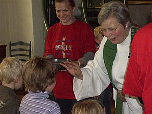 - Der Kindergottesdienst wird von jugendlichen Mitarbeitern begleitet. Sie bereiten mit der verantwortlichen Pastorin die Kindergottesdienste vor, und übernehmen eigenverantwortlich Kleingruppen im Verlauf des Gottesdienstes, in denen sie den Kindern, dem Altern entsprechend, die biblische Geschichte erzählen.