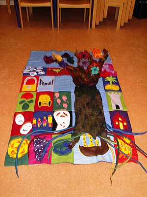 Die Wurzeln gehören zu einem großen gefilzten Baum, ein Symbol für unser ganzes Leben, in Anlehnung an Psalm 1, 3: ,,Der ist wie ein Baum, gepflanzt an den Wasserbächen, der seine Frucht bringt zu seiner Zeit, und seine Blätter verwelken nicht.